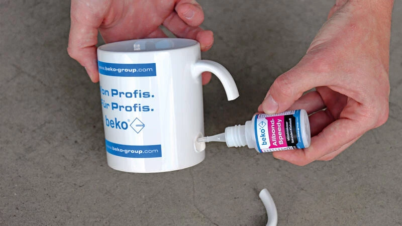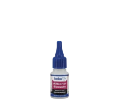 beko Allbond-Spray bei Raumtemperatur auf beide zu verklebenden Flächen aufsprühen, bis ein deutlicher Flüssigkeitsfilm erkennbar ist. Anschließend Spray ablüften lassen. beko Allbond-Speedy bei Raumtemperatur in einer dünnen Schicht auf eine der Fügeteiloberflächen auftragen und die zu verklebenden Teile für etwa 10 Sekunden fest zusammenpressen. Nach etwa 20 Sekunden weist die Verklebung Handfestigkeit auf.