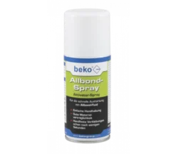 Fügeteiloberfläche mit beko Allclean reinigen. Allbond-Spray bei Raumtemperatur auf beide zu verklebenden Flächen aufsprühen, bis ein deutlicher Flüssigkeitsfilm erkennbar ist. Anschließend Spray ablüften lassen.