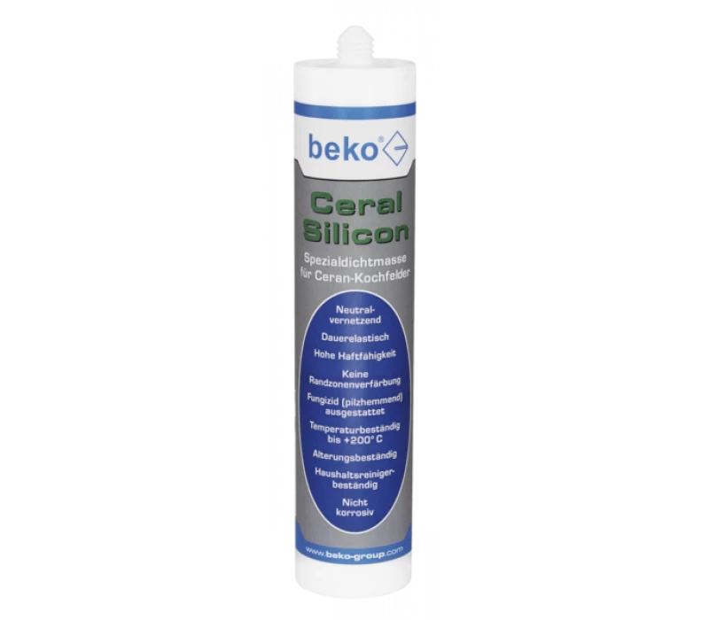 Speziell für den Einbau von Ceran-Kochfeldern, fungizid (pilzhemmend) ausgestattet, keine Randzonenverfärbung (bei Naturstein), beständig gegen verdünnte Säuren und Laugen, temperaturbeständig bis +200° C, beständig gegen haushaltsübliche Reinigungsmittel, nicht korrosiv
