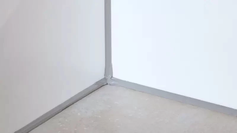 Anschließend wird der beko Fugenschnurz im ca. 45°-Winkel in der Ecke angesetzt und in alle drei Richtungen für einige Zentimeter gezogen.