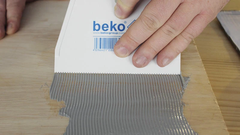 Gezahnter Leimspachtel zum perfekten Auftrag von Klebstoffen wie beko Weißleim, beko Fibcon usw.