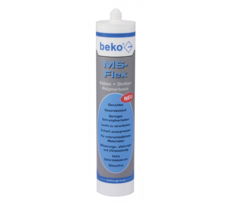 Die Klebeflächen müssen sauber, fettfrei und tragfähig sein. beko MS-Flex Polymerkleber punkt- oder wellenförmig an einer Seite auftragen und die Teile innerhalb der offenen Zeit (ca. 10 Min.) zusammenfügen. Den Werkstoff andrücken und im Bedarfsfall bis zur Aushärtung leicht verpressen. Nicht überstreichbar mit Alkydharzlacken.