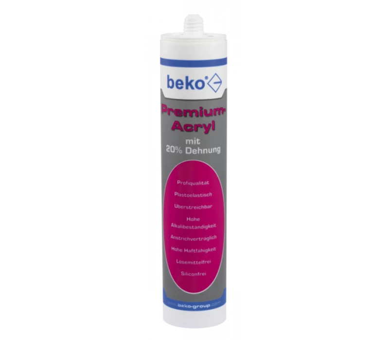 Die Haftflächen müssen tragfähig, trocken, staub-, wachs- und fettfrei sein. Risse keilförmig aufweiten. Bei stark saugenden Untergründen mit einer Mischung aus Wasser und beko Premium-Acryl (5:1) vorbehandeln. Die Fugen satt, ohne Lufteinschlüsse füllen und, wenn nötig, glätten. Solange sich keine feste Oberflächenhaut gebildet hat, ist die Fuge vor Feuchtigkeit und Schmutz zu schützen. Für optimale Fugendimensionierung die DIN 18540 beachten. Zur Verhinderung einer Dreiflankenhaftung sollte Hinterfüllmaterial verwendet werden. Vor der Anwendung und dem Überstreichen sind Vorversuche durchzuführen. Bei nicht fach- und sachgerechter Anwendung ist jede Produkthaftung ausgeschlossen.