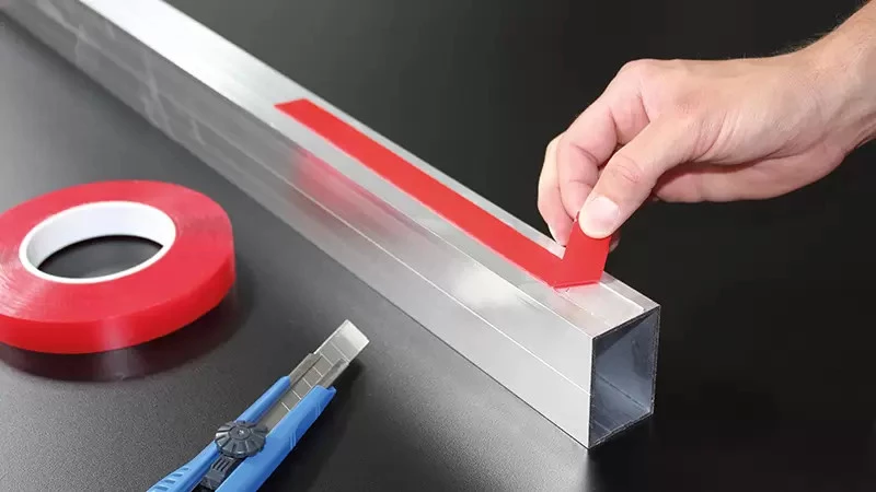 Nach dem Abziehen der roten Schutzfolie ist die Verklebung durchzuführen und die zu verklebenden Gegenstände fest anzudrücken. Luftblasen sind zu vermeiden. beko Pro Tack 1000 hat bereits direkt nach der Verklebung eine sehr hohe Klebekraft. Die endgültige Klebekraft erreicht beko Pro Tack 1000 nach 24 Stunden.