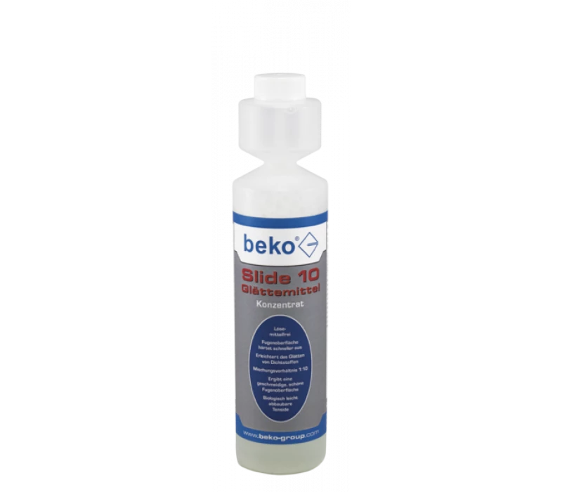 Glättemittel für den Glas- und Fassadenbau bzw. für Verfugungen im Sanitärbereich, lösemittelfrei, ergibt eine geschmeidige, optisch einwandfreie Fugenoberfläche, bio logisch leicht abbaubare Tenside