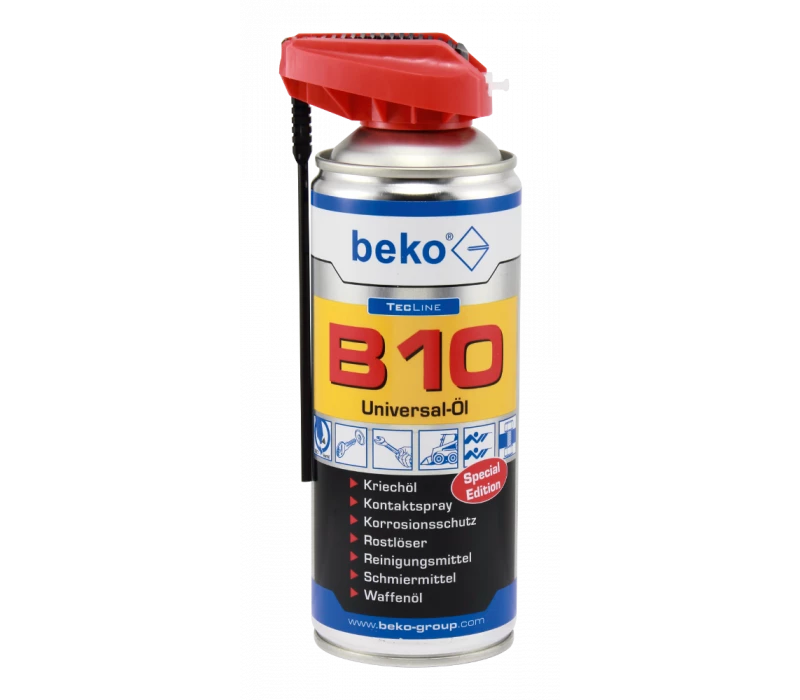 TecLine B10 ist ein universelles Multifunktionsöl für fast alle Arbeitsbereiche. Durch das Kapillarrohr ist ein gezieltes Auftragen möglich. Es löst Rost, z. B. bei festsitzenden Muttern, und beseitigt quietschende Geräusche an beweglichen Teilen. Verdrängt Wasser und dient zugleich als Kontaktspray. Schützt und konserviert Schließzylinder und Metalle. Löst Pulverrückstände an Waffen. Beseitigt mühelos Teer, Fett, Bremsstaub und Kleberreste.