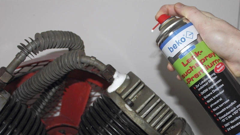 Zu überprüfende Stellen ggf. freilegen und die Leitungen unter Druck setzen. Das TecLine Lecksuchspray -Premium- in einem Abstand von 30 bis 50 cm aufsprühen. Eine undichte Stelle wird durch eine extrem starke Schaumbildung angezeigt. Nach dem Prüfvorgang die Teile mit Wasser reinigen.