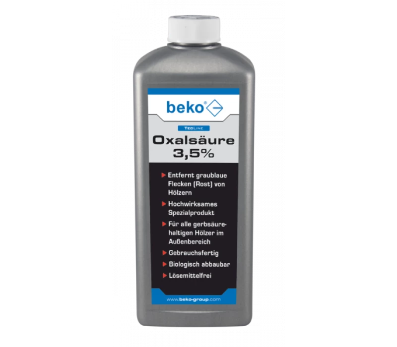 beko Oxalsäure 3,5% wird auf vorgenässtem Holz mit einem flachen Pinsel oder dem beko Niederdrucksprüher -Spezial – sparsam aufgetragen. Anschließend muss die Oxalsäure einwirken.
