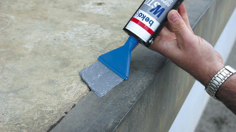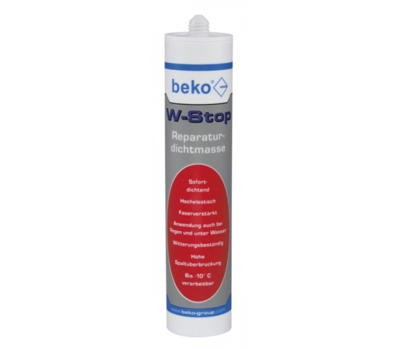 Die Dichtflächen von Schmutz und losen Teilen befreien. beko W-Stop mit einem Pinsel oder einer Spachtel dick auftragen und rechtwinklig zum Riss verstreichen. beko W-Stop dichtet sofort und bei jedem Wetter, auch auf feuchten Oberflächen und sogar unter Wasser. In extremen Fällen Glasvlies einlegen bzw. nach ein paar Tagen eine zweite Schicht beko W-Stop aufbringen. Poröse Untergründe möglichst grundieren.