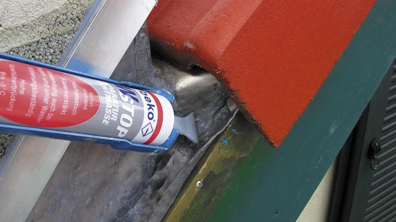 Schließen von Rissen und Löchern, Abdichtung an Dächern, Lüftungsrohren und -kanälen, Abwasserrohren, Lichtkuppeln, Blechverkleidungen usw. Haftet auf Stein, Mauerwerk, Beton, Marmor, Ziegel, Glas, Wellasbest, Bitumenbahnen und Dachpappe, Teer, Metall, Blechen wie z.B. Kupfer, Zink, Blei, Alu, sowie Holz und Hart-PVC