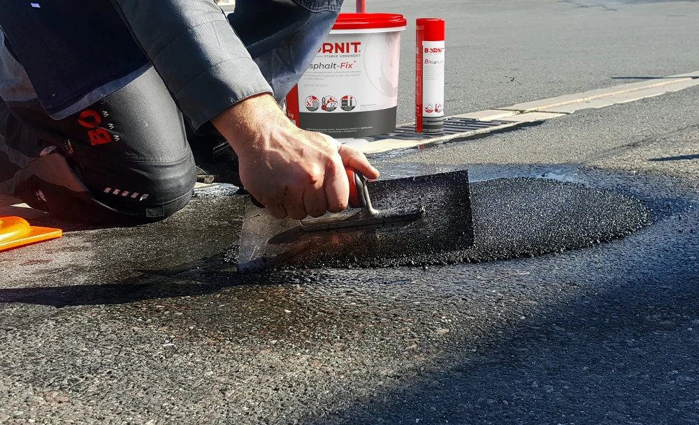 BORNIT®-Asphalt-Fix wird hauptsächlich für Reparaturarbeiten bei der Straßenunterhaltung eingesetzt.