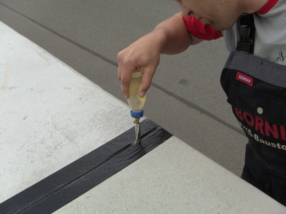 Der Untergrund muss trocken, staub- und fettfrei sowie ohne lose Bestandteile sein. Die Komponenten A + B werden gemischt und der Betonprimer mit einem Pinsel gleichmäßig aufgetragen. Nach einer Ablüftzeit von 30 Minuten bis 2 Stunden (temperaturabhängig) kann der Dichtstoff eingebracht werden. Der Betonprimer darf nicht vollständig abgetrocknet sein. Sind mehr als 24 Stunden vergangen, ist die alte Primerschicht aufzurauhen und neuer Betonprimer aufzutragen. Es ist darauf zu achten, dass sich auf der Primeroberfläche kein Feuchtigkeitsfilm durch Taupunktunterschreitung gebildet hat.