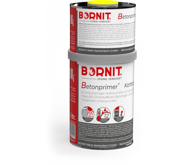 BORNIT®-Betonprimer ist ein Zweikomponenten-Haftvermittler für Polysulfid-Dichtstoffe, die vorzugsweise im Bodenbereich eingesetzt werden. Zur Vorbehandlung der Fugenflanken vor Verwendung von BORNIT®-Kaltverguß und BORNIT®-Fugenspachtel.