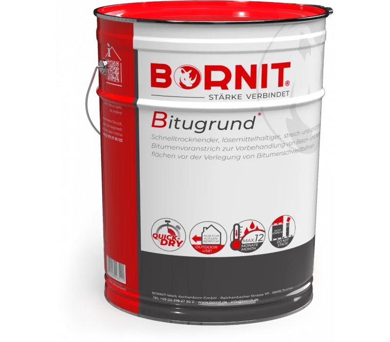 BORNIT®-Bitugrund ist als Voranstrich unentbehrlich für die Vorbehandlung von heiß aufzubringenden Bitumenabdichtungen sowie für die Verlegung von Dach- und Schweißbahnen.