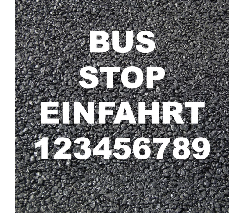 Die zu markierende Fläche sollte trocken, frostfrei, tragfähig und eben sein. Die Voraussetzung für eine gute Haftung der BORNIT®-Fertigmarkierung „Buchstaben, Ziffern“ ist ein sorgfältiges Abkehren der zu bearbeitenden Flächen.