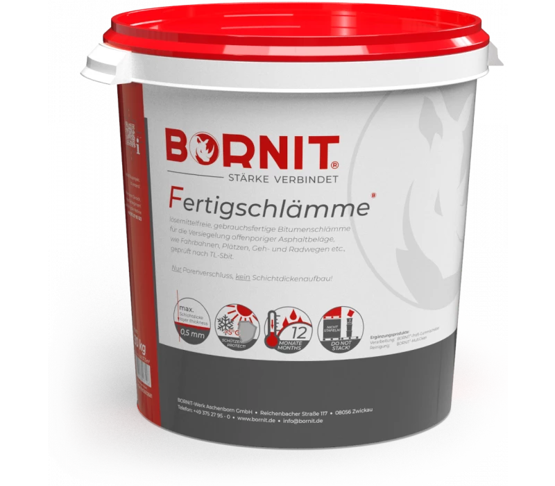 Infolge der beträchtlichen Dichte-Unterschiede der einzelnen Komponenten der Fertigschlämme sind Absetzungserscheinungen während der Lagerung und des Transportes nicht zu vermeiden. Aus diesem Grund ist das Material vor Gebrauch sorgfältig (maschinell mit einem Rührgerät) aufzurühren. Danach lässt sich die gebrauchsfertige BORNIT®-Fertigschlämme leicht und problemlos verarbeiten.