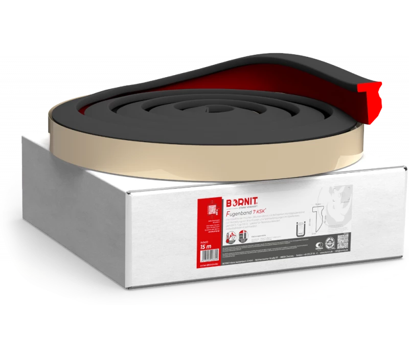 BORNIT®-Fugenband 7 KSK ist ein patentiertes Spezialprofil mit einer leistungsstarken Klebebeschichtung auf der Montageseite.