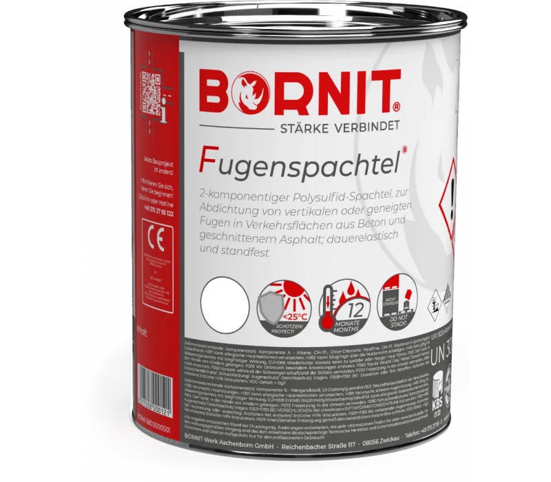 BORNIT®-Fugenspachtel ist ein elastischer, standfester Zweikomponenten-Fugendichtstoff auf Polysulfidbasis für Fugen mit einer Dehnfähigkeit von bis zu 35% der Fugenbreite.