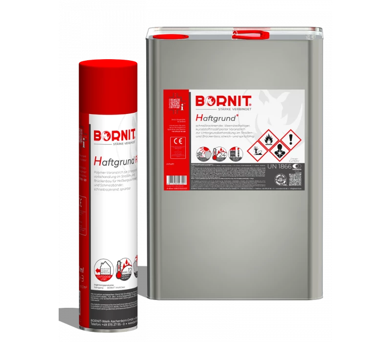 Zur Gewährleistung und Verbesserung der Haftung von BORNIT®-Heißvergussmasse SNV 164, BORNIT®-Heißvergussmasse TL, BORNIT®-Schienenvergussmasse S und BORNIT®-Fugenband.