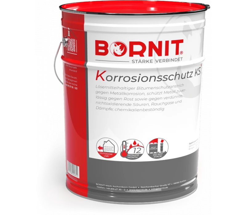 BORNIT®-Korrosionsschutz KS ist ein abdichtender und vor Korrosion schützender Deckanstrichstoff auf Bitumenbasis.