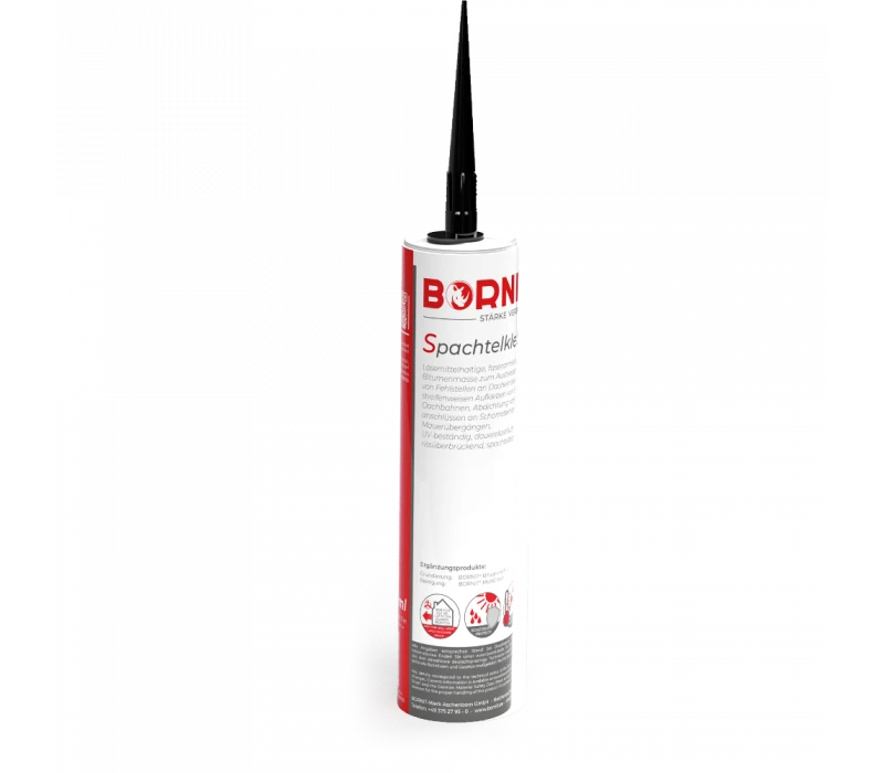BORNIT®-Spachtelkleber ist eine plastoelastische Bitumenspachtelmasse, die speziell für kleinere Reparaturen konzipiert ist und schnell direkt aus der Kartusche verarbeitet werden kann.