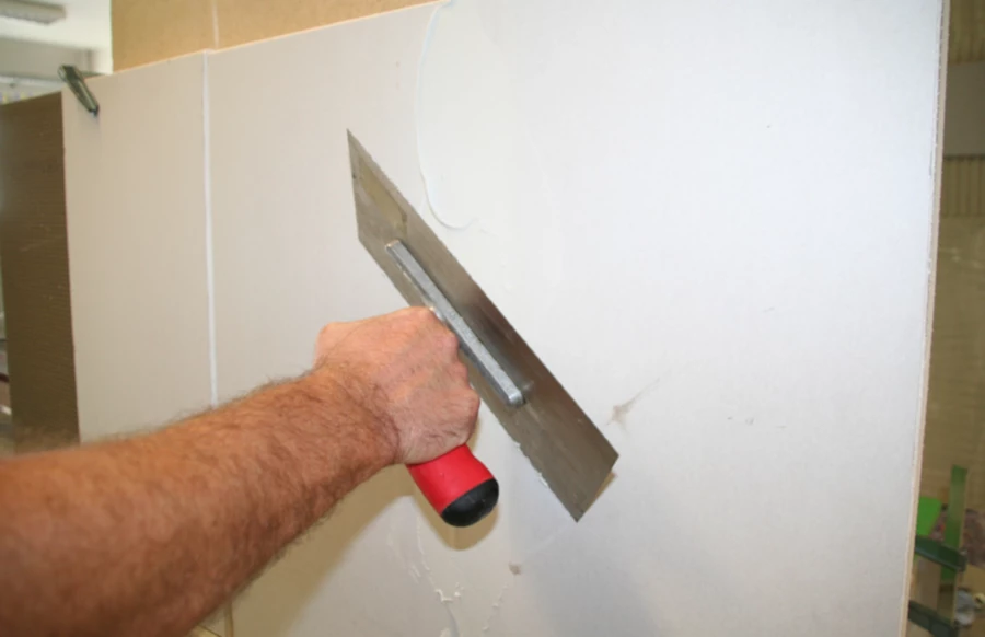 - Abspachteln und Glätten von Plattenstößen bei Gipskarton-, Gipsfaser- und Gipswandbauplatten