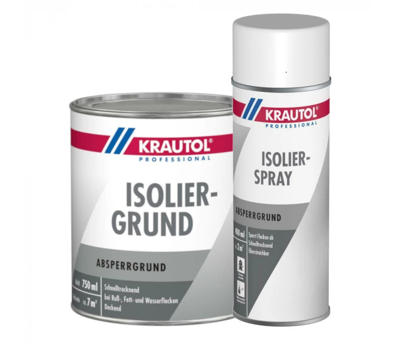 KRAUTOL ISOLIERGRUND ist ein weißer Grundanstrich zur Isolierung von Untergrundverunreinigungen im Innen- und Außenbereich. Teer, Rauch, Ruß, Fett- und Nikotinflecken, sowie getrocknete Wasserflecken und die meisten Farbstifte werden zuverlässig abgesperrt. Styropor wird nicht angelöst. Der Absperrgrund eignet sich auch zum Grundieren von saugenden Untergründen aus Faserzement, Gips und Beton. Eine Folgebeschichtung auf der Grundierung ist zwingend erforderlich. Aufgrund der materialtypischen Geruchsentwicklung von Alkydharzlacken ist die Verarbeitung im Innenbereich nur bedingt zu empfehlen.