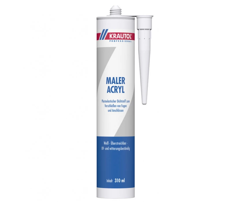KRAUTOL MALER ACRYL kann zum Abdichten von offenen Fugen und Anschlüssen mit mäßiger Dehnungsbelastung verwendet werden, z. B. zum Verfugen von Tür und Fensteranschlüssen, Fensterbänken, Rollladenkästen, Deckenanschlüssen, Leichtbauwänden, Einbaumöbeln, Putzflächen, Verkleidungen und Kunststoffrohren.