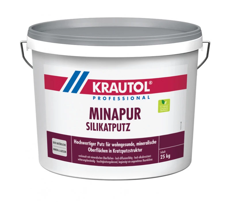 KRAUTOL MINAPUR Silikatputz mit max. 2 % SILIKAT FIXATIV verdünnen. Mit geeigneten Flächenspritzgeräten verarbeiten.