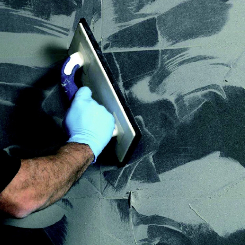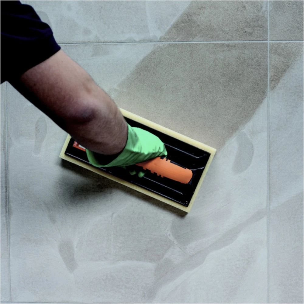 Dann wird der Fugenmörtel mit der PCI Gummifugscheibe in die Fugen eingebracht und muss anziehen. Eventuell ist ein zweites Mal mit PCI Nanofug Premium bündig nachzuschlämmen. Nach ausreichendem Anziehen (Fingerprobe) ist die verfugte Oberfläche mit einem leicht feuchten stabilen Schwamm oder Schwammbrett nachzuwaschen. Nach dem Abtrocknen ist der verbleibende Mörtelschleier mit einem leicht feuchten Schwamm zu entfernen.