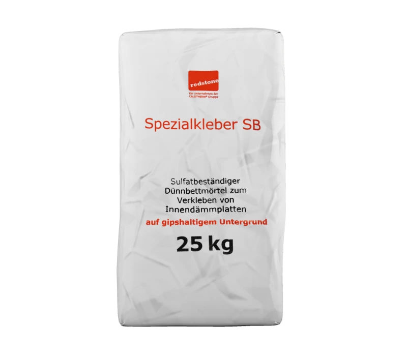 Spezialkleber SB ist anwendbar auf gipshaltigen und allen mineralischen Untergründen. Voraussetzung dafür ist ein tragfähiger und trockener Untergrund. In Verbindung mit feuchtem Mauerwerk oder eindringender Feuchte sind gipshaltige Materialien nicht beständig. Die vorhandene Putzschicht muss eine Mindestdicke von 10 mm aufweisen. Dünne Spachtellagen sind nicht ausreichend stabil, um das Innendämmsystem langfristig zu tragen.