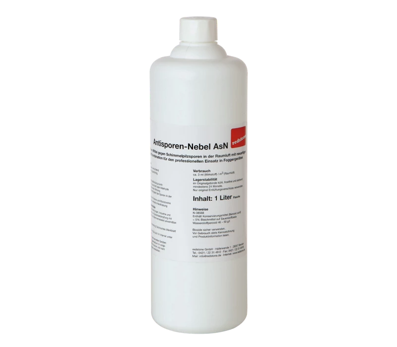Die Rezeptur des redstone Antisporen-Nebels (AsN) wurde so konzipiert, dass bei der Anwendung im Warmvernebler ein geeignetes Trägermedium im Verhältnis 3:1 bis 10:1 (je nach Gerätetyp) beigemengt werden muss. Anschließend erfolgt die Vernebelung mit einem geeigneten Warmnebelgerät.