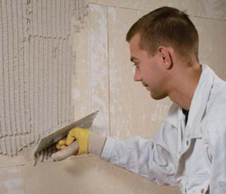 Material mit einer Zahnkelle in einer Schichtdicke von 5-6 mm aufziehen.