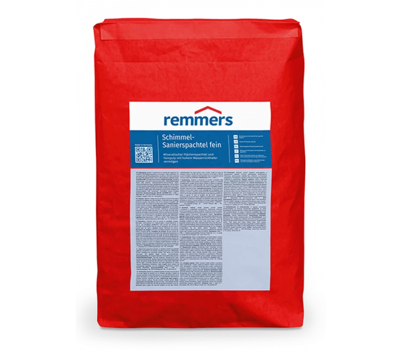 Schimmel-Sanierspachtel fein ist ein werkgemischter Feinspachtel, der nach Anmischen mit Wasser gebrauchsfertig ist. Er hat ein hohes Haftvermögen, ist standfest, geschmeidig, gut spachtelfähig und auf null ausziehbar. Bei fachgerechter Verarbeitung sind sehr ebene und glatte Oberflächen herstellbar. Der erhärtete Schimmel-Sanierspachtel fein ist feuchtigkeitsunempfindlich, wasserdampfdurchlässig und hat eine hohe kapillare Leitfähigkeit.