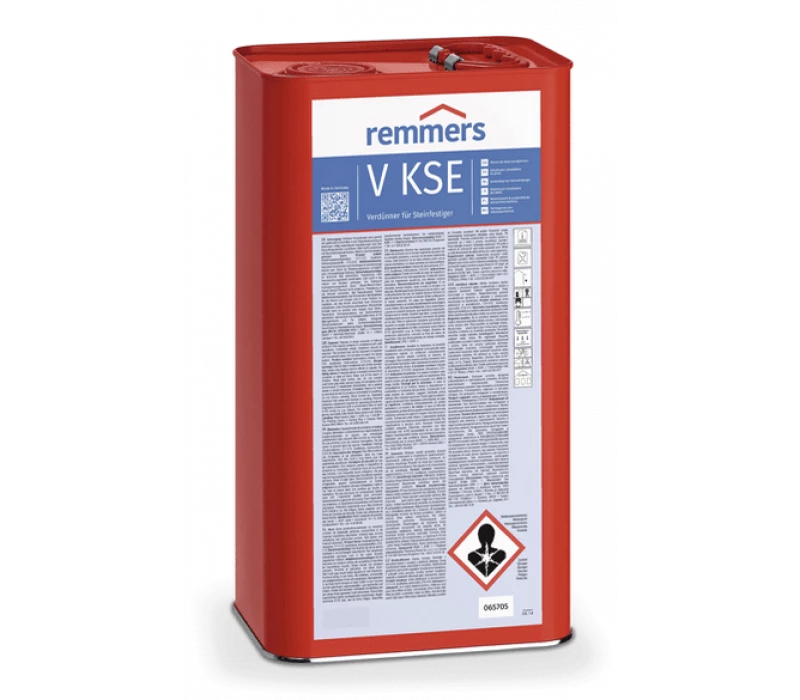 Zum Entfernen von Materialüberschüssen von Naturstein- und Ziegelflächen, die mit einem Steinfestiger auf Basis von Kieselsäureestern (KSE) gefestigt wurden. Dazu wird ein saugfähiges, fusselfreies Tuch mit Remmers V KSE getränkt und die behandelten Flächen abgetupft.