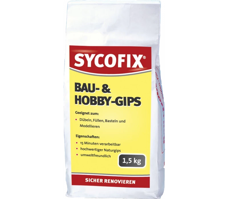 SYCOFIX® Bau-und Hobby-Gips ist hervorragend geeignet zum Einsetzen von Dübeln, Füllen von Löchern, Basteln und Modellieren und ist somit ideal für Profi und Heimwerker.