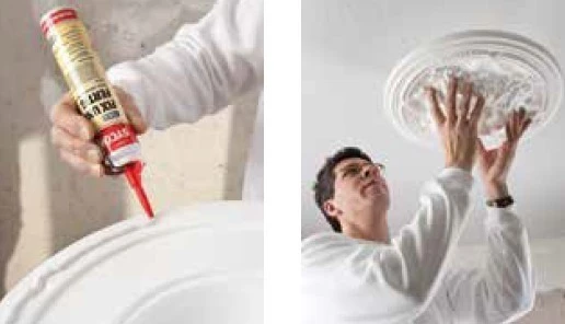 SYCOFIX Fix & Fertig 3 in 1 strangförmig in ca. 10 cm Abstand oder punktuell auf eines der zu verklebenden Teile auftragen und anschließend dieses andrücken und aushärten lassen.