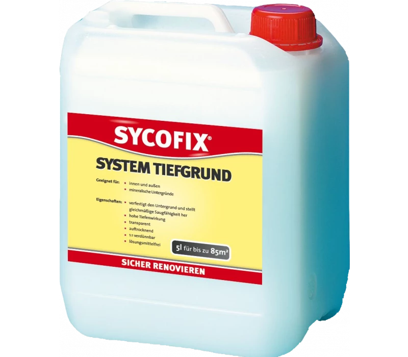 SYCOFIX® System-Tiefgrund LF ist ein universelles lösungsmittelfreies Grundiermittel für nachfolgende Tapezier-, Anstrich-und Putzarbeiten im Innen- und Außenbereich.