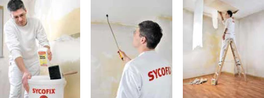 SYCOFIX® Tapetenablöser extra-stark ist optimal geeignet zum Ablösen von leichten und schweren Papiertapeten , mehrfach bestrichenen Raufasertapeten, Leimfarben und Fixierungsresten.