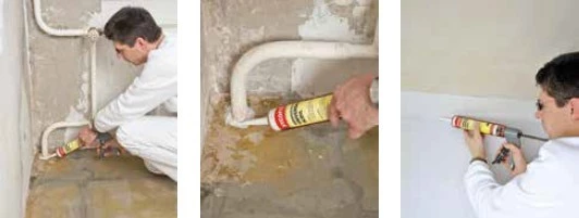 SYCOFIX Universal Acryl mit einer Kartuschenpresse gleichmäßig in die Fugen bzw. Risse spritzen und sofort mit feuchtem Finger oder einer Spachtel glätten (Wasser mit Spülmittelzusatz).