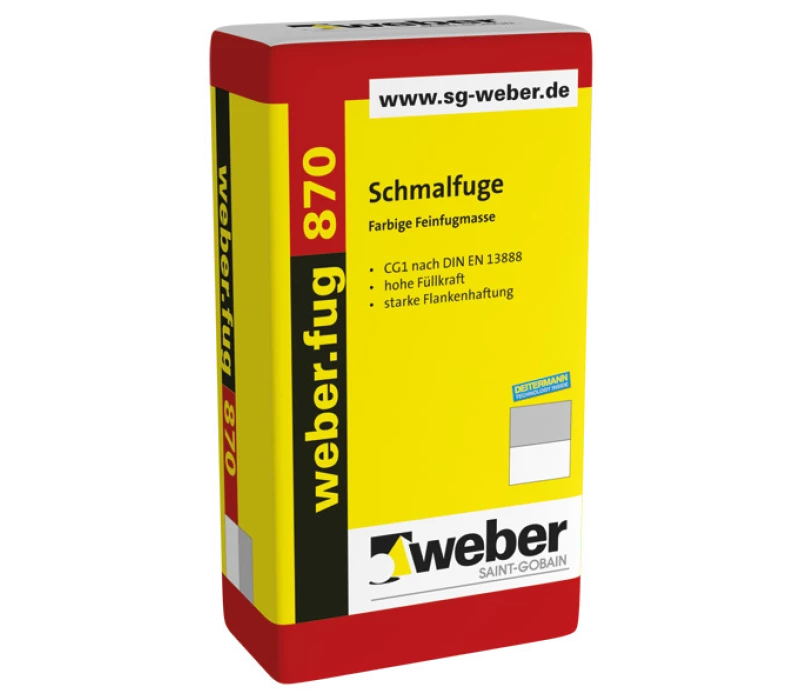 weber.fug 870 ist eine universell einsetzbare Feinfugmasse für Wand und Boden auch im Nass- und Dauerunterwasserbereich, Dusche, Bad. Zur Verfugung von keramischen Belägen aus, Mosaik, Feinsteinzeug, Steinzeug und Steingut. weber.fug 870 zeichnet sich durch die geschmeidige und leichte Verarbeitbarkeit aus, wobei die Anzahl der verschiedenen Fugenfarbtöne die Chance bietet der Fliesenfläche ein perfektes Gesamtbild zu verleihen.