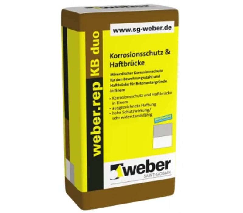 Weber.rep KB duo ist ein Kombinationsprodukt, dass sowohl als mineralischer Korrosionsschutz des Bewehrungsstahles sowie als zementäre Haftbrücke verwendet werden kann.