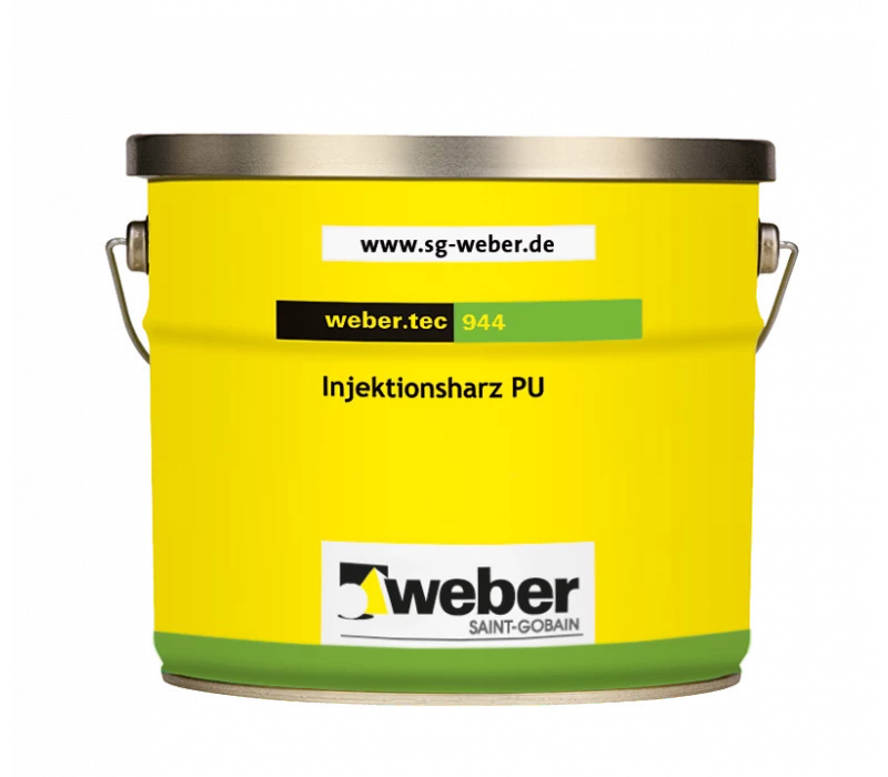 Erforderlich bei Injektionen im Wasserbereich. weber.tec 944 S wird mit einer Zugabemenge von 0,5 bis 5 % in das Injektionsharz eingerührt. Material dann sofort verarbeiten. Reaktionsgeschwindigkeit ist abhängig von Wassermenge und Temperatur.