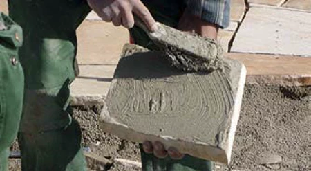 Zur Verlegung der Fliesen- oder Natursteinplatten auf den erdfeuchten Dickbettmörtel wird die Haftbrücke nochmals auf der Plattenrückseite oder dem Dickbettmörtel in schlämmfähiger Konsistenz vollflächig aufgetragen.